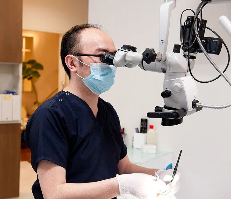 治療時の診査とマウスピース、また歯1本1本の治療はマイクロスコープを用いて精密に根本からの治療を行います。